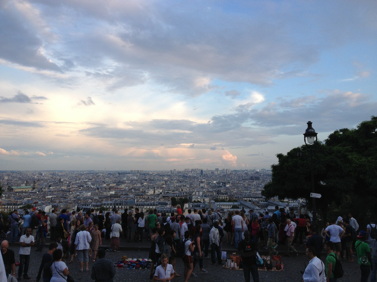 We got lost in the back slope of Montmartre, and cut short our expedition to find the famous Montmartre Cemetery in order to arrive early enough to attend 9 p.m. Compline at Sacre Coeur only to discover it was at 9:30 and on top of that, search the famous horizon in vain for the Eiffel Tower. We sat in the church till 9:40 and gave up hope of the alleged Compline, and were accosted by pushy Kenyan bracelet makers at the foot of the hill. So, not the day we anticipated, but all-in-all perfect anyway: Paris. (Did I mention our tiny, quaint 5th floor room up a spiral staircase overlooking the street? We chose a LOVELY hotel!)